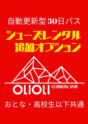30日パス シューズレンタル追加オプション - おとな・高校生以下共通 (自動更新型)